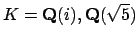 The following three examples illustrate computation of $ \Cl (K)$ for $ K=\mathbf{Q}(i), \mathbf{Q}(\sqrt{5})$ and $ \mathbf{Q}(\sqrt{-6})$.